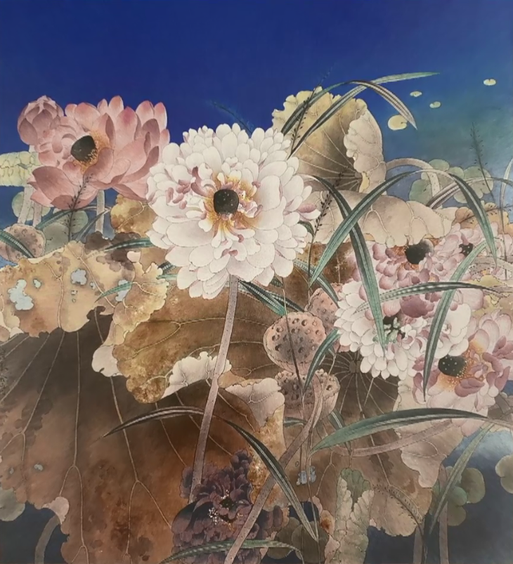 这幅作品我觉得它还是非常绚烂的,表现了荷塘的一种繁盛的感觉,这种气象我觉得是和我们所处的一个新的时代相契合。
