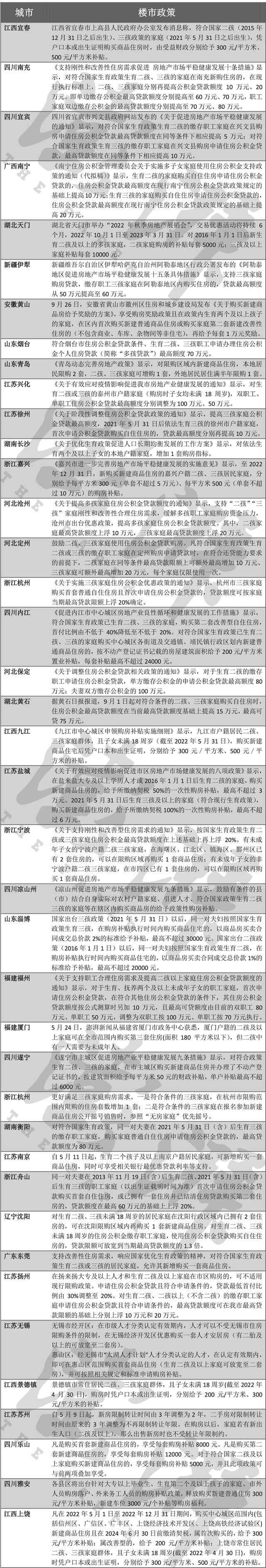 出台类似政策的还有东莞和沈阳。东莞于5月14日发布的《关于促进房地产市场平稳健康发展的通知》中提到,支持改善性住房需求,响应国家优化生育政策的精神,对符合国家生育政策生育二孩或三孩的居民家庭,允许其新增购买一套商品住房。