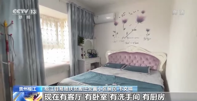 榕江县易地扶贫搬迁安置小区居民 韦文娟:我们过来的时候这个房子是按每人20平方米分的。现在有客厅、卧室、洗手间、厨房,都挺方便的。