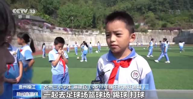 古州三小学生 麻建民(2017年摆王村搬迁进城):(我觉得开心的事情是)可以跟同学们一起去足球场、篮球场,踢球、打球。