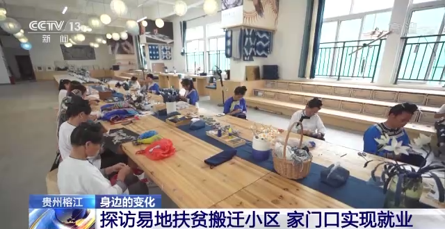 韦文娟工作的“妈妈回家手工坊”就在特和社区里。这是一个由广东佛山通过东西部协作项目,在榕江建起的就业帮扶车间。会刺绣、蜡染、木工等手工活的搬迁妇女都可以来做工。
