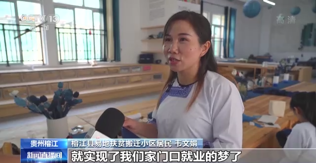 榕江县易地扶贫搬迁小区居民 韦文娟:实现了我们在家门口就业的梦,因为这样我们可以照顾老人,也可以照顾小孩。我们结婚之后出去的时候,就把小孩子放在家。那时候我小孩一岁多一点,就留给我婆婆带,(我们)非常想小孩。