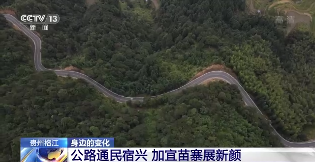 总台记者 陈春晓:我们之所以能够站在这,把加宜村的田园风光尽收眼底,全要靠穿行在月亮山腹地的通村公路。还记得十年前我们来月亮山计划乡采访的时候,当时走的通村路是土路,还遇到下雨天,道路泥泞湿滑,有些路段需要几人合力推车。薄弱的基础设施让加宜苗寨的美丽只能藏在大山深处。
