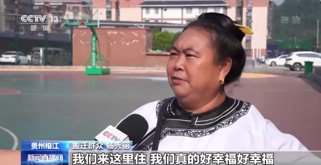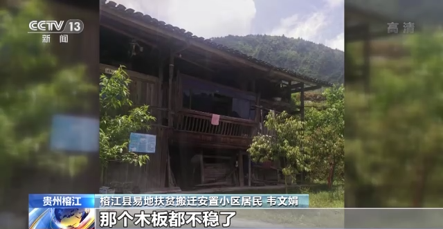 榕江县易地扶贫搬迁安置小区居民 韦文娟:我们老家的房子是用杂木做的。那个木板都不稳了,现在是我们城里的楼房,你看,多漂亮。