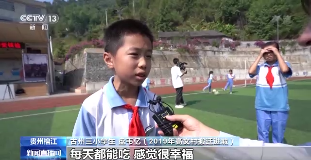 古州三小学生 盘韦亿(2019年高文村搬迁进城):能和爸爸妈妈住在一起,能吃妈妈给我做的饭。每天都能吃,感觉很幸福。