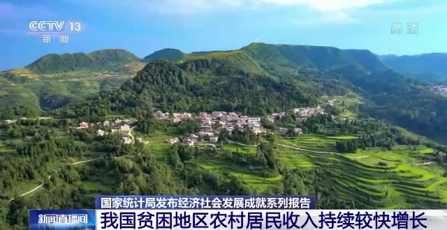 国家统计局今天(10月11日)发布的报告显示,党的十八大以来,我国农村贫困人口全部脱贫,贫困地区农村居民收入持续较快增长,生活水平不断提高,生活质量继续提升。