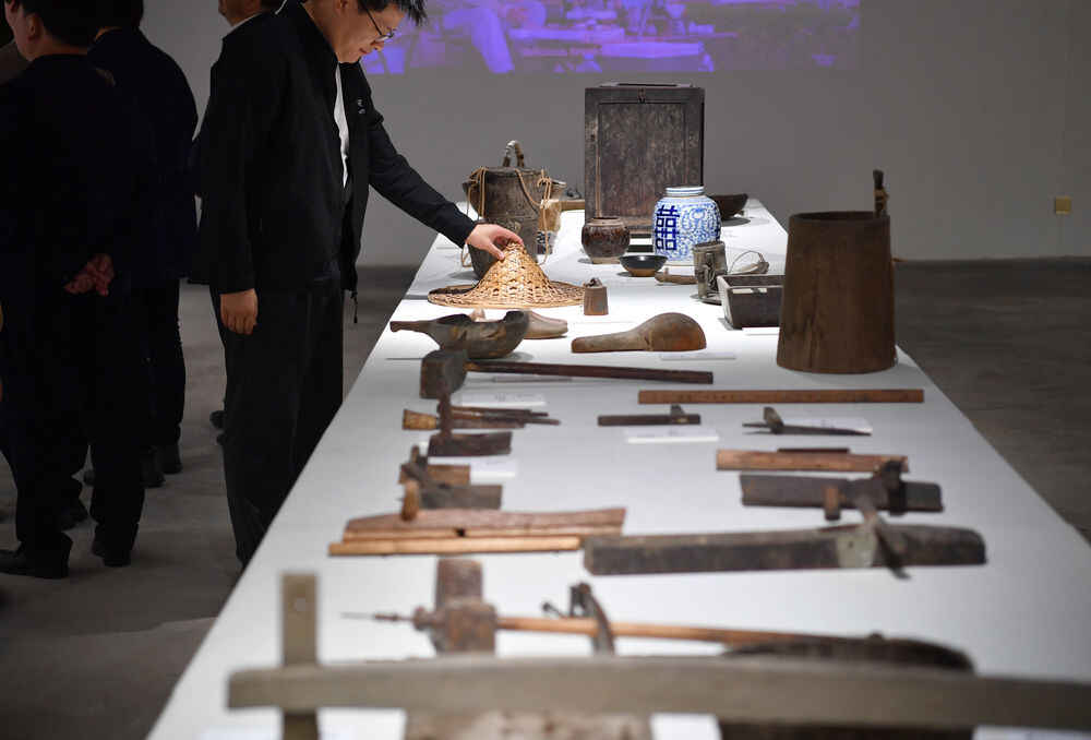 ↑游客在宁陕县城关镇渔湾村村史馆内参观游览(10月10日摄)。