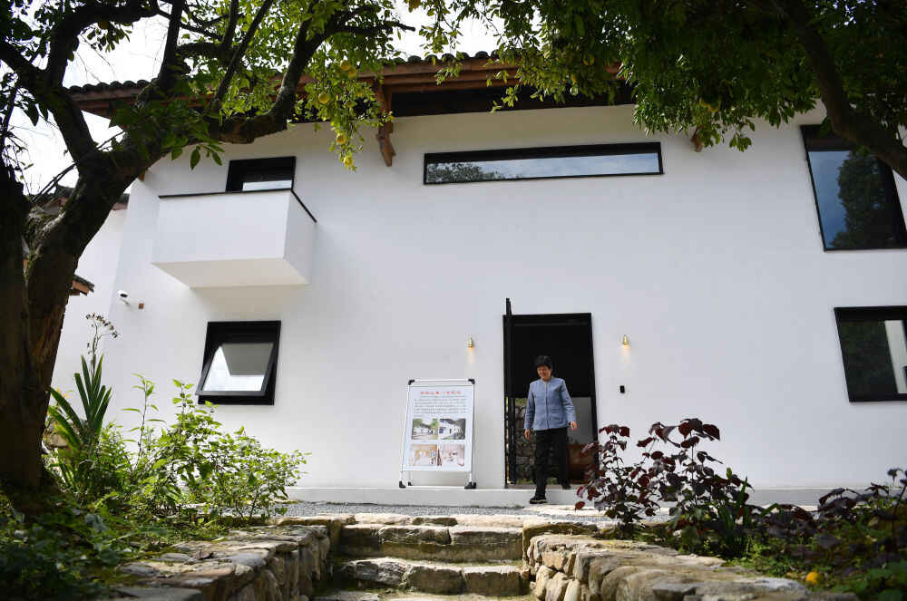 ↑宁陕县城关镇渔湾村一处由闲置农房改造而成的民宿院落(10月10日摄)。