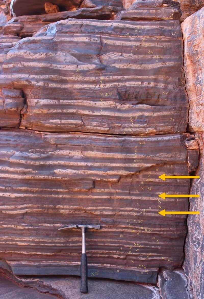 对澳大利亚带状铁构造的分析表明,这些岩石包含多个尺度的旋回变化,大约以10厘米和85厘米的间隔重复。将这些厚度与沉积物的沉积速度结合起来,研究人员发现这些周期性变化大约每1.1万年和10万年发生一次。