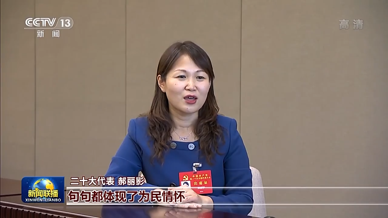 二十大代表 郝丽影:总书记的报告振奋人心,鼓舞士气,句句都体现了为民情怀,给我们指明了前进的方向。十年来,我们的国家社会和谐、百姓安康,居民的腰包鼓了、信心足了。
