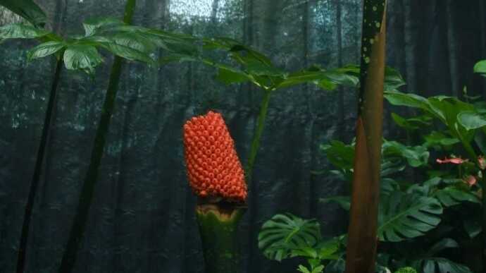 近日,国家植物园(北园)展览温室两株火红的巨魔芋(Amorphophallus titanum)首次结实,果序犹如两把鲜艳的火炬,洋溢着欢欣和喜悦。