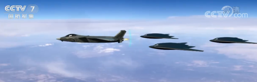 就这种新颖的空中编队模式,节目还配发了双座版歼-20指挥控制三架无尾飞翼式无人机编队飞行的动画画面。