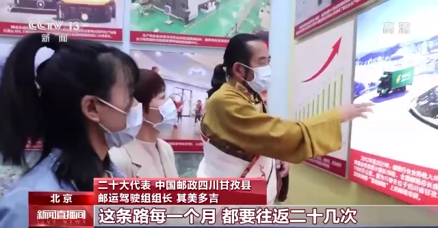 1989年,26岁的其美多吉成为一名邮车驾驶员,30多年来,他驾驶邮车在雪线邮路上运送邮件,沿途需要翻越14座海拔4500米以上的大山,累计行驶里程140多万公里,相当于绕赤道35圈。坚持把每一个邮件,平安地送到群众的手中,是其美多吉三十多年来一直未变的信念,三十多年来他驾驶的邮车从未发生一次责任事故,他还荣获了“感动中国2018年度人物”“全国优秀共产党员”“时代楷模”等多项荣誉。来到北京,现场聆听了总书记所做的二十大报告后,让其美多吉也对这些年发生在身边的生活巨变有了更深刻的理解。