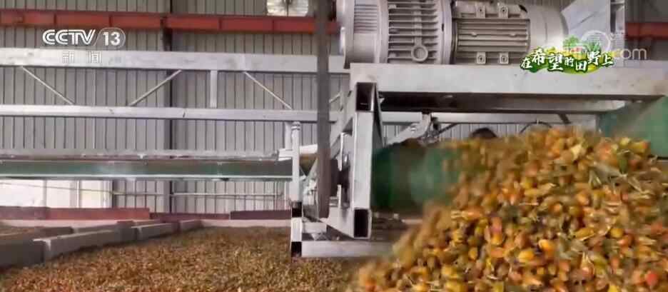 在福鼎市一家专业合作社里,农户将新鲜采摘的黄栀子运到厂区,过磅、验单、登记、装卸。车间内,成千上万的黄栀子由传送带送入高压蒸汽杀青机,而后进入烘干、打包。当地采取“合作社+基地+农户+市场”模式,带领群众增收致富。