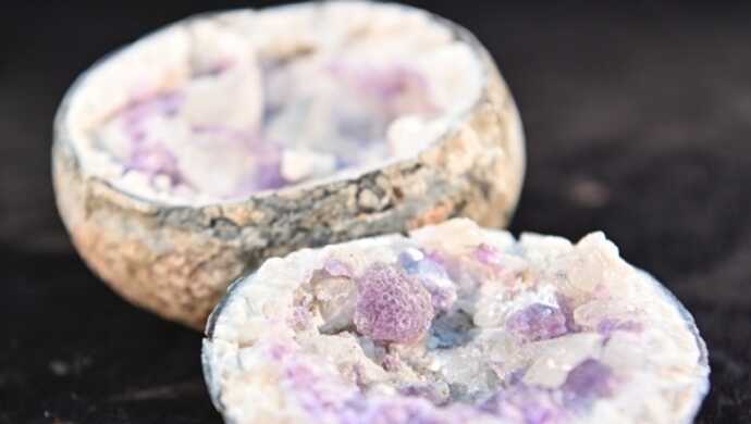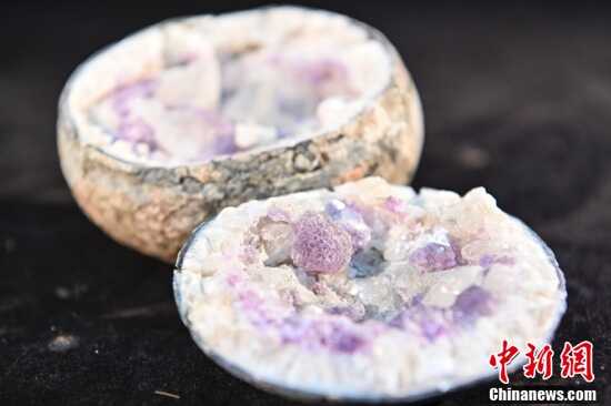 恐龙博物馆馆藏内的晶体恐龙蛋,蛋内保存有地下水进入蛋体内部形成的方解石晶体。