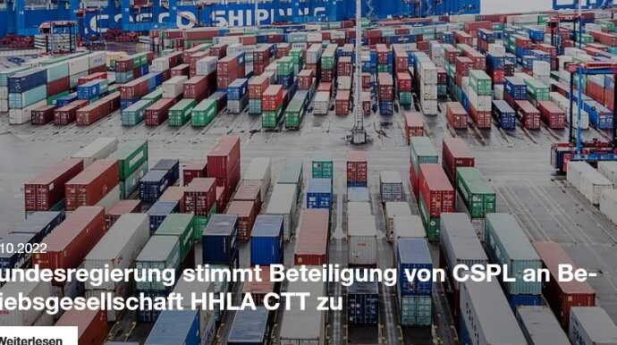 德广联刊发独家调查报道指出,俄乌战争爆发后,德国政坛对中国的态度发生整体转变,担心中国可能会利用其经济影响力来贯彻自身地缘战略利益,因而对中资入股汉堡港持反对态度。但总理朔尔茨不愿喊停这笔交易,总理府似乎正在运用“拖延战术”,至今未将此事列入联邦内阁会议的讨论议程。