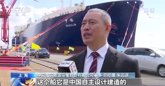 中远海运能源运输股份有限公司董事 总经理 朱迈进:这个船它是中国自主设计建造的第一艘(LNG)船,技术指标非常先进,它对码头的通用性也比较好,为后续整个船实现全球的运营打下了非常好的基础。