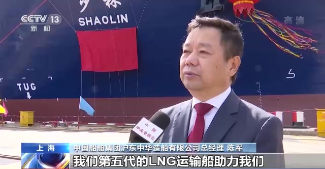 中国船舶集团沪东中华造船有限公司总经理 陈军:我们第五代的LNG运输船助力我们今年的LNG(船)订单量已经超过了30艘,在全球(LNG船)市场份额里边,我们可以占到15%以上。
