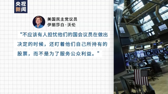 美国民主党议员伊丽莎白·沃伦(Elizabeth Warren)发帖称,“不应该有人担忧他们的国会议员在做出决定的时候,还盯着他们自己所持有的股票,而不是为了服务公众利益。”