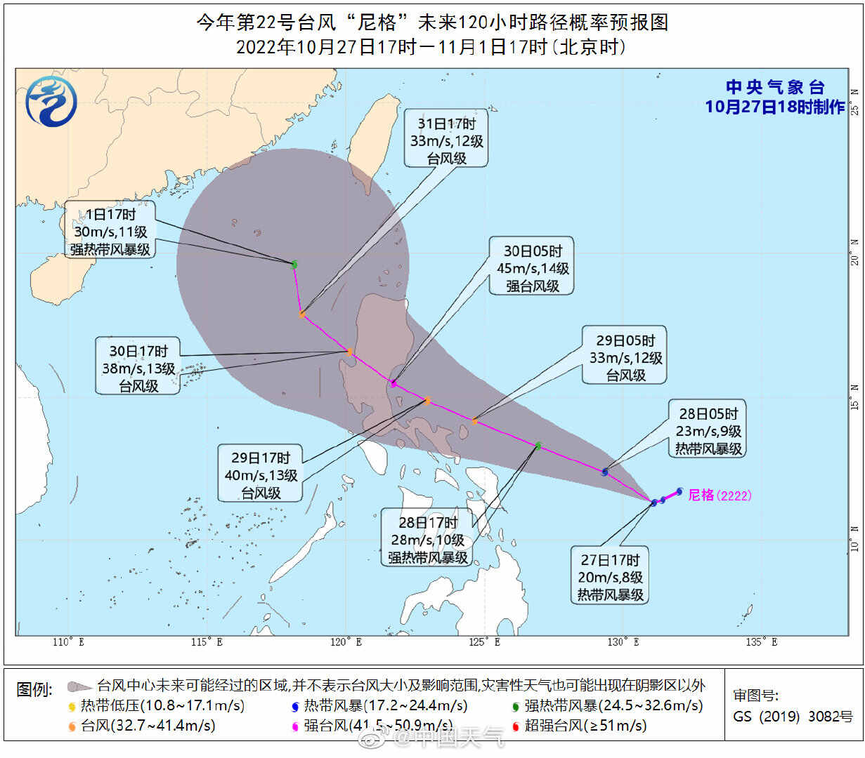 10月27日08时,菲律宾以东的热带低压升级为今年第22号台风“尼格”(热带风暴级),目前“尼格”的云系还在不断整合,强度还会加强。