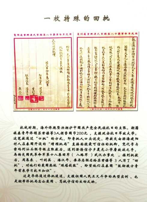 这是心系故土的家国情怀。翻阅侨批,处处可见海外游子的深情。“裁章握管愁难开,雁阵鸳翼各东西”“谁怜海外飘零客,未卜何时解愁眉”,这是独处异乡、思念家乡的孤寂;“迢递客乡去路遥,断肠暮暮复朝朝”“风光梓里成虚梦,惆怅何时始得消”,这是事业未成、无颜归乡的愧疚;“家中费用如充裕,切命海山入校读书,勿误”,这是对孩童读书上学的叮咛……侨批中更有家国情怀。辛亥革命时期,侨胞通过侨批等渠道捐资筹款,孙中山盛赞“慷慨助饷,多为华侨”;抗战时期,一批印着“勿忘国耻”“还我河山”等字样或盖着“誓雪国仇”“同胞快醒”戳记的侨批,是侨胞爱国救国心情的自然流露,其中潮籍旅泰青年苏君谦等3人捐资国币200元支援“抗大”,周恩来、叶剑英等回批“殊堪钦敬”,盼他们“鼓励彼方青年前来学习抗日知识”;上世纪70年代,美国承认“台湾是中国的一部分”,新加坡侨胞陈应昌致信母亲:“我国外交胜利,中外咸钦,声誉日隆,侨情扬溢”……习近平总书记指出,华侨一个最重要的特点就是爱国、爱乡、爱自己的家人。这就是中国人、中国文化、中国人的精神、中国心。 这是仁爱孝悌的传统伦理。仁爱孝悌是中华传统文化的核心内容。海外侨胞通过侨批“有一块钱寄一块钱,有十块钱寄十块钱”,恪尽赡养家乡眷属义务,同时也将无法陪侍亲人的遗憾写进侨批。“想妻你将欲生产,家无亲爱偃互,为夫实在难过”,这是丈夫因妻子分娩不能陪伴的愧疚;“不肖自愧身飘海外,朝夕不能在家供仰之事,十不孝之罪也”,这是儿子因父母年长无法侍奉的自责;“切要谨慎从事,不可在外放荡”“要迎头赶上,勿落人之后”,这是长辈对后生成长的教导……侨批,就是中华仁孝观念的生活化再现。