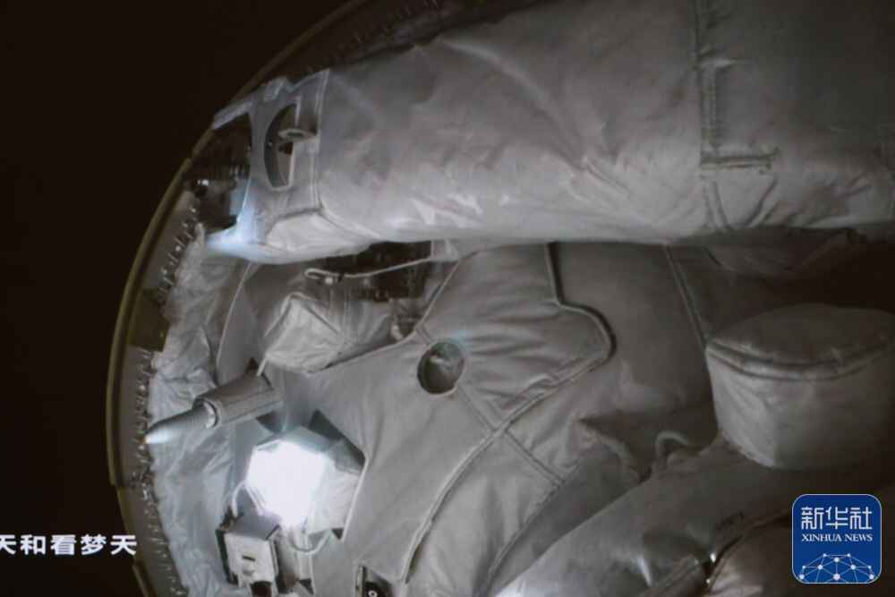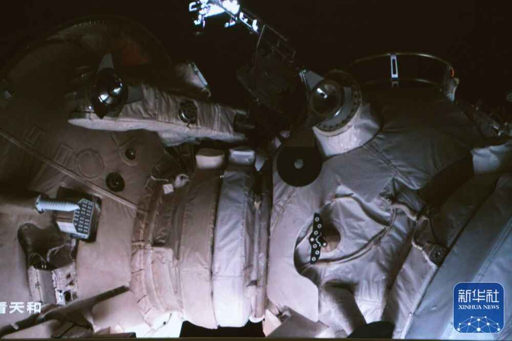 11月1日在北京航天飞行控制中心拍摄的空间站梦天实验舱与空间站组合体在轨完成交会对接。这是梦天实验舱成功对接于天和核心舱前向端口后,天和核心舱内的情况。新华社发(孙丰晓 摄)