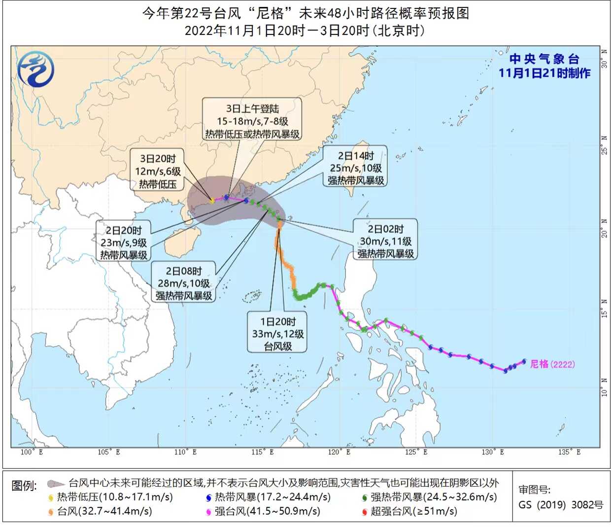 截至11月1日22时,今年第22号台风“尼格”已减弱至强热带风暴强度,并继续移向华南沿海。