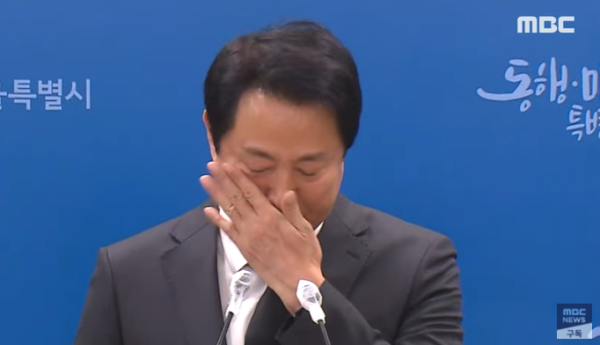 11月1日,韩国首尔市市长吴世勋(上图)就首尔梨泰院踩踏事故含泪道歉:“作为首尔市长,我对这起事故负有无限责任,并表达我最深切的歉意。”
