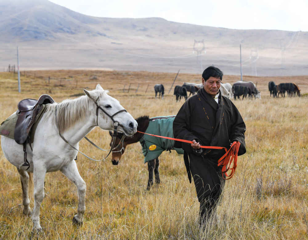 谈话间,一人一骑疾驰如风,转眼来到记者眼前。这个名叫万玛王青的藏族小伙子瘦而结实,由于长时间的高原放牧生活而皮肤黝黑、性格腼腆,但马背上的他却神采奕奕。