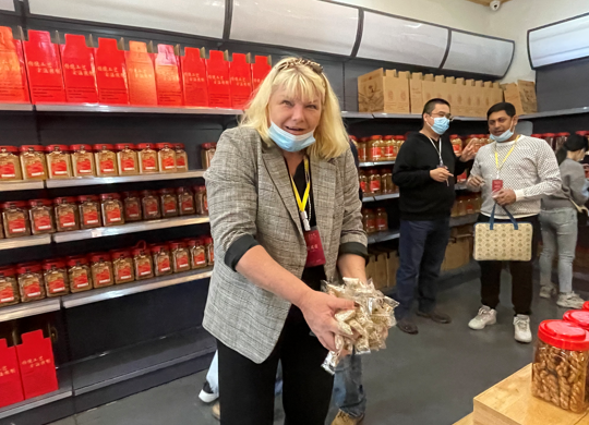 来自美国的大学教授金伯利购买了多种红糖制品(图/余菲)