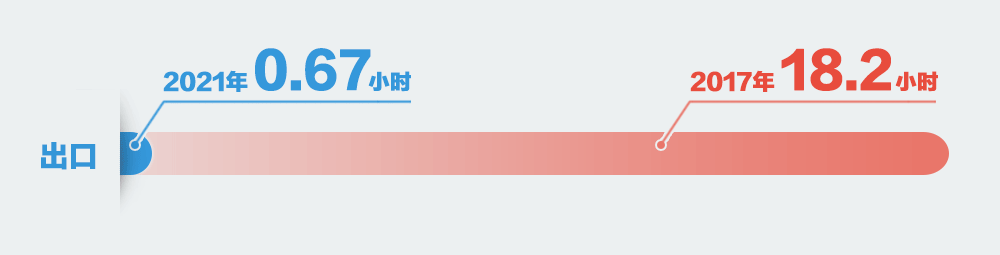 ◆2021年北海港口岸进口整体通关时间比2017年缩短98.82小时,出口整体通关由2017年的18.2小时压缩到约0.67小时。