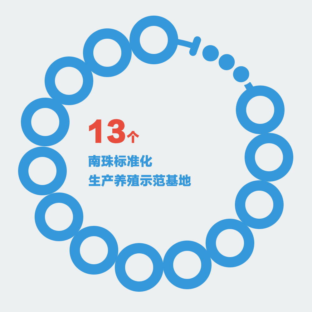 根据北海市海洋局提供的数据,北海从全产业链谋划推进南珠振兴,已创建南珠标准化生产养殖示范基地13个,南珠养殖面积超万亩,年产量1000公斤左右。