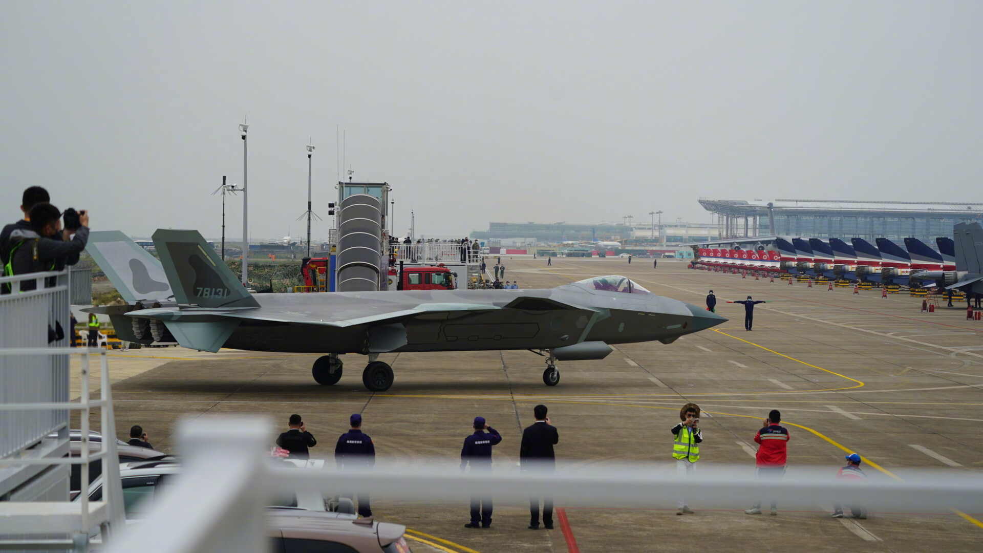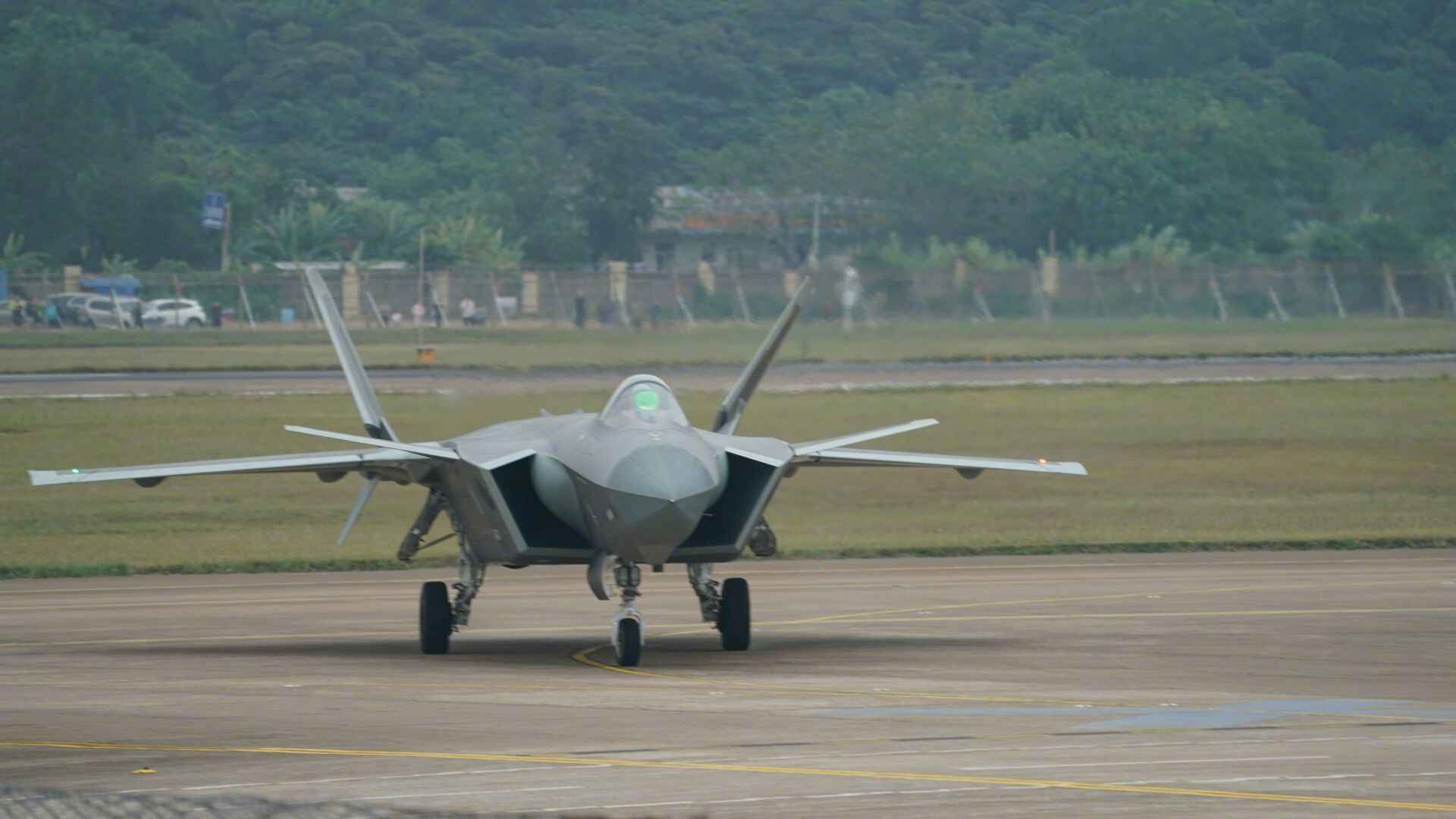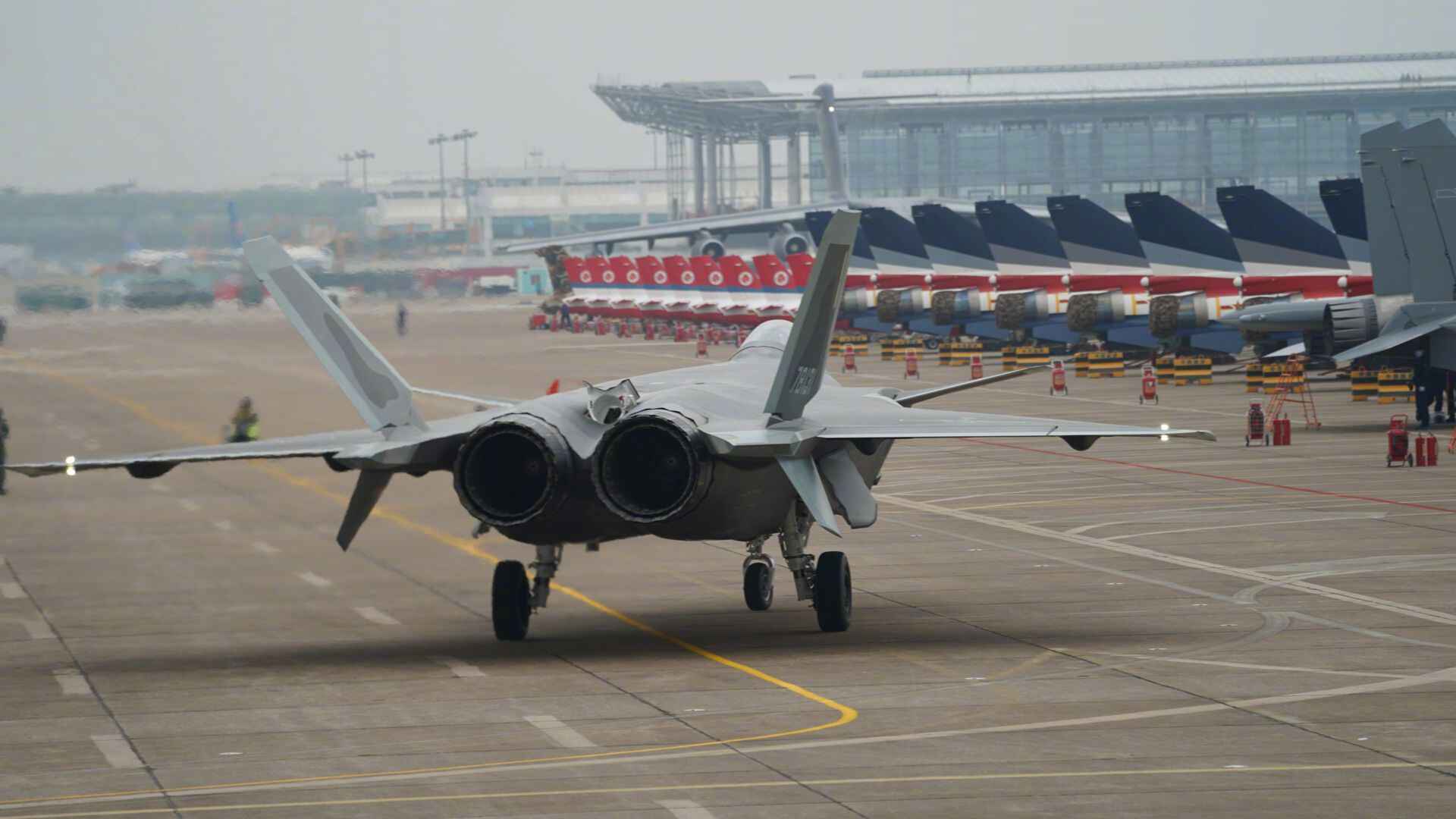 11月5日下午1时许,四架中国空军第五代战机歼-20现身珠海金湾机场上空,进行编队飞行训练。在训练结束后,两架歼-20战机降落在珠海金湾机场的跑道上。