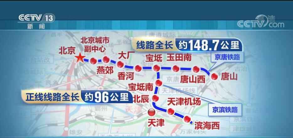 京唐城际铁路起自北京城市副中心站,终至河北省唐山市既有唐山站,途经北京市通州区、河北省廊坊市、天津市宝坻区、河北省唐山市,线路全长约148.7公里,开通初期,由北京站始发终到。