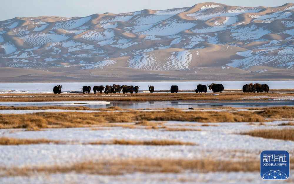 ↑野牦牛在新疆阿尔金山国家级自然保护区内的依协克帕提湿地觅食(2019年4月2日摄)。新华社记者 胡虎虎 摄
