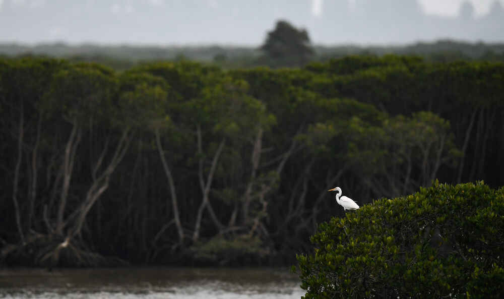 一只白鹭在海南东寨港国家级自然保护区休息(1月28日摄)。新华社记者 杨冠宇 摄
