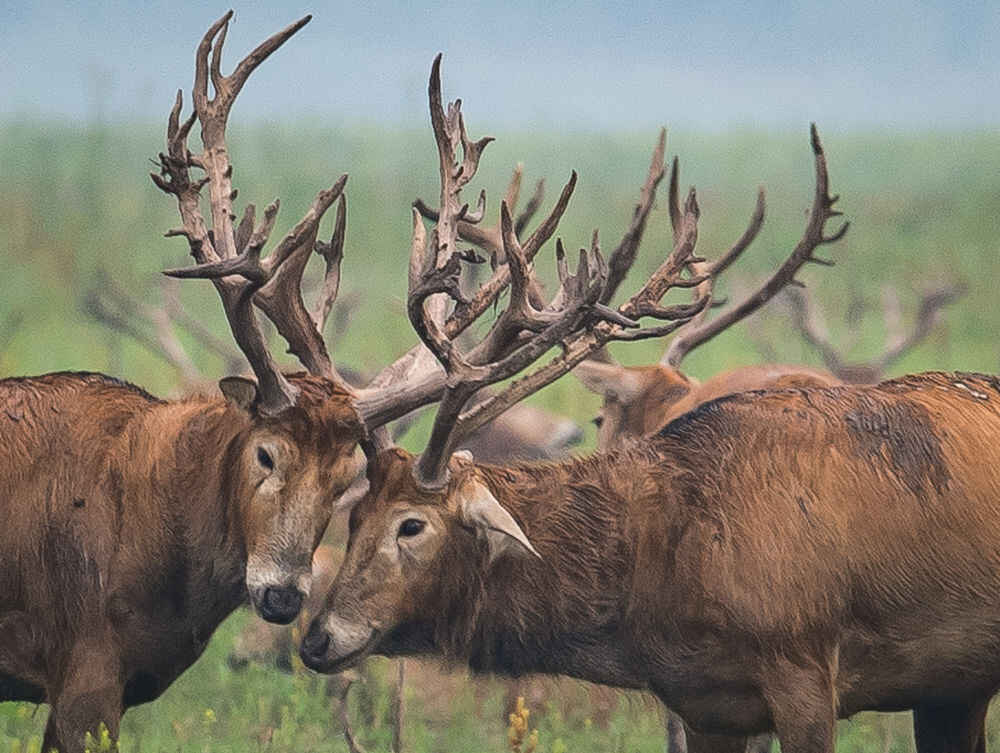 麋鹿在湖北石首麋鹿国家级自然保护区内活动(2021年5月17日摄)。新华社记者 肖艺九 摄