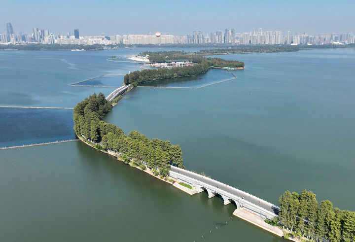 武汉东湖一景(10月19日摄)。新华社记者 程敏 摄