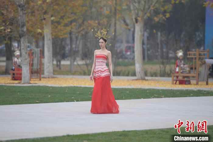 11月6日,以戏曲等传统文化元素跨界运用为主题的服饰演绎在北京园博园上演。中新社记者 田雨昊摄