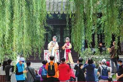 在各具特色的中式园林中,不经意和戏曲演出“撞个满怀”,是中国戏曲文化周的独有体验。11月初的北京,秋意正浓,园博园中浓浓的秋色与台上精彩的演出相映生辉。