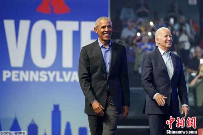 当地时间11月5日,拜登和奥巴马出席费城集会为民主党人中期选举拉票。