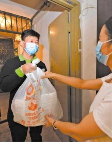 配送员在预约时间内将商品送到消费者手中。 本报记者陈斌摄