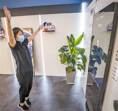 顾客在一家超市的会员店体验智能健身器。随着智能经济的发展,超市中的智能科技商品越来越多样,如VR眼镜、AI装备等,让顾客在线下获得体验机会,弥补了网购的不足。 本报记者 张武军摄