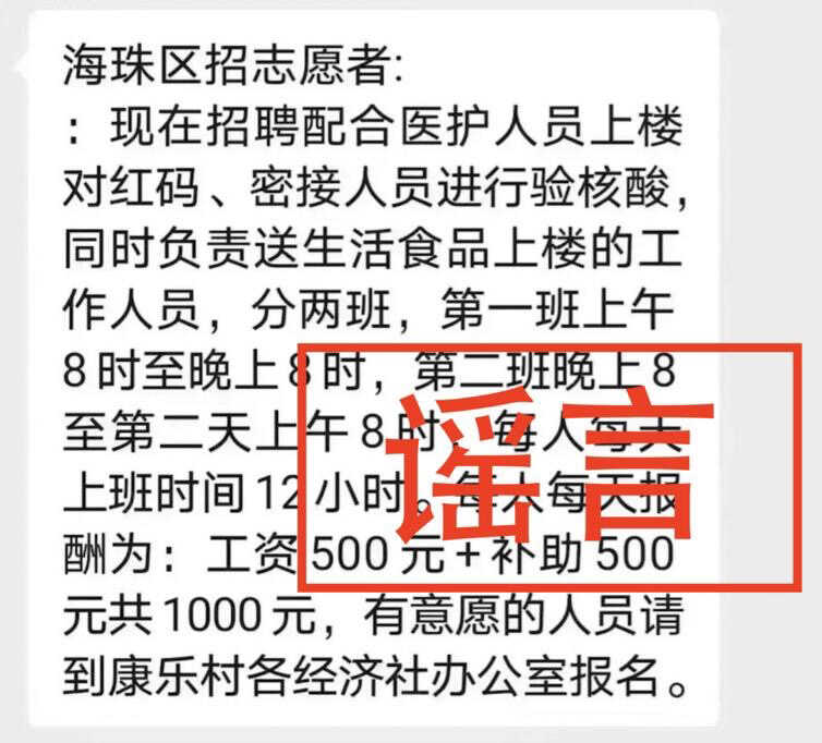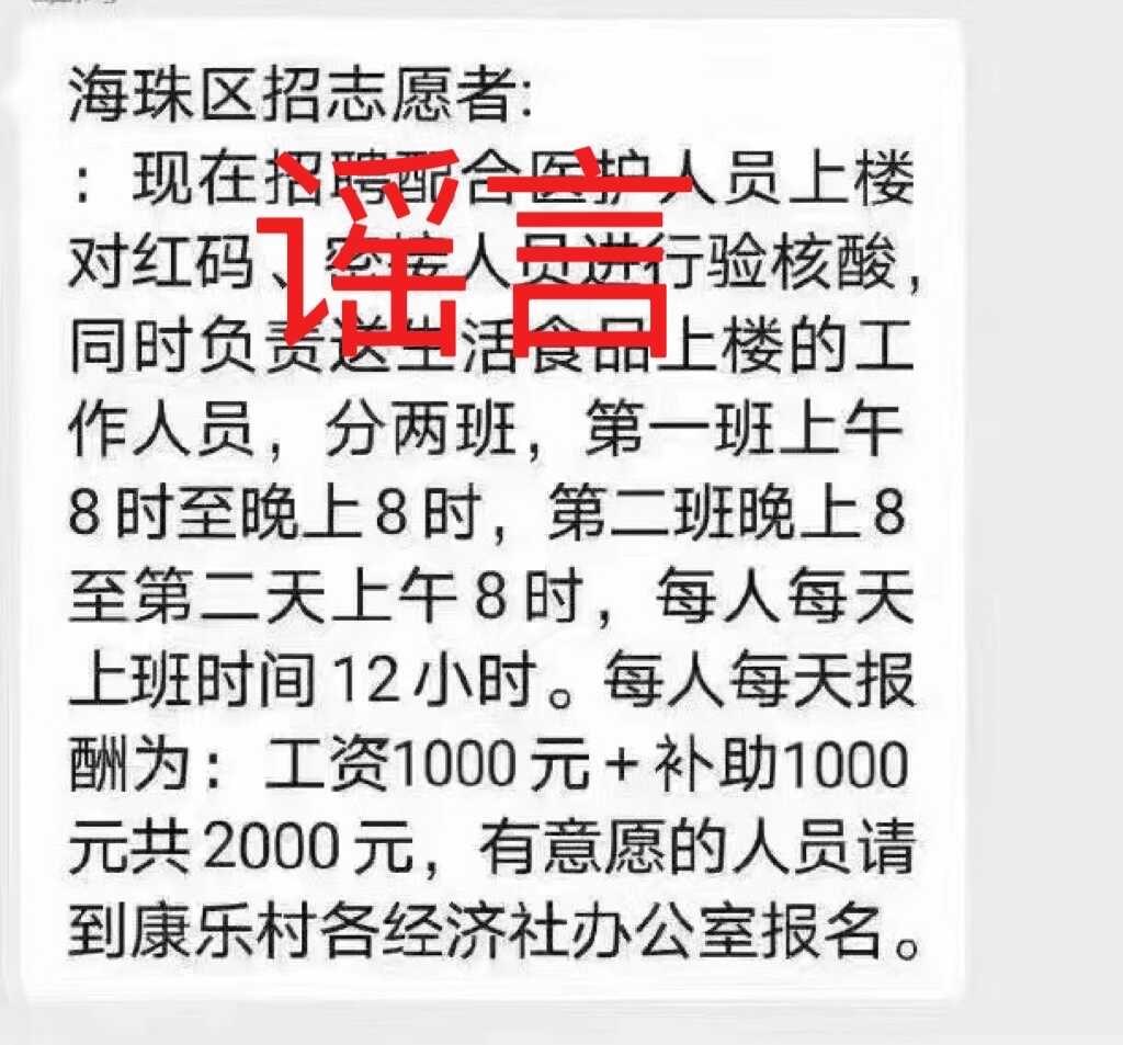 海珠康乐村高薪招聘志愿者?记者拨打了网传报名电话……
