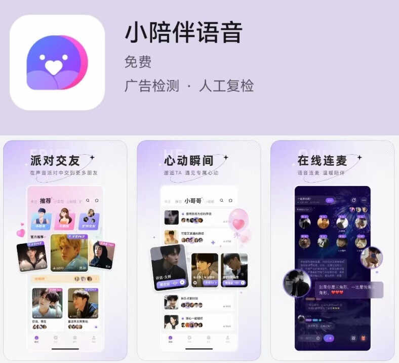 小陪伴语音去年上线,主打娱乐房陪伴,今年稳居语音社交榜TOP10,骨干成员来自YY、网易等头部大厂。实际上小陪伴背靠的大厂在这个赛道摸爬滚打已达10年之久,单单技术研发团队就超400人。