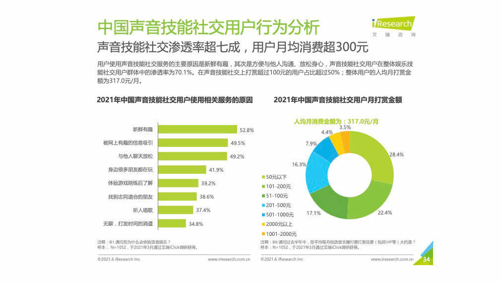 2023年语音行业路在何方?易观文娱行业研究总监廖旭华等专家表示,从行业趋势来看,声音社交在往轻游戏等更加娱乐向转变,众多巨头进入掘金这个赛道。而艾瑞咨询报告显示,声音社交在整个娱乐社交行业有着高达70%的渗透率,用户规模有望达到3亿,消费能力较高。