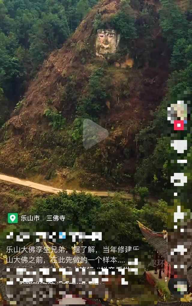 有网友发布的视频标题为“乐山大佛孪生兄弟”,配文称:“据了解,当年修建乐山大佛之前,在此先做的一个蓝本”。视频中,大佛只有佛面,面形丰满,眉似弯月,双目微睁,平视前方。