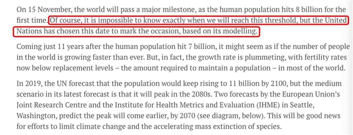 “因为,我们无法知道,具体是在什么时候(全球人口)将达到这一门槛。”报道如是说。