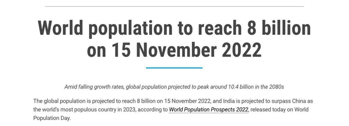 “今年的世界人口日(7月11日)恰逢一个具有里程碑意义的年份,我们预计地球上第80亿位居民将要诞生。这是一个庆祝我们的多样性、认识到我们共同的人性,惊叹于健康方面的进步使寿命延长,并大幅降低了孕产妇和儿童死亡率的时刻。”今年7月,联合国秘书长古特雷斯在回应《世界人口展望2022》报告时这样说道。