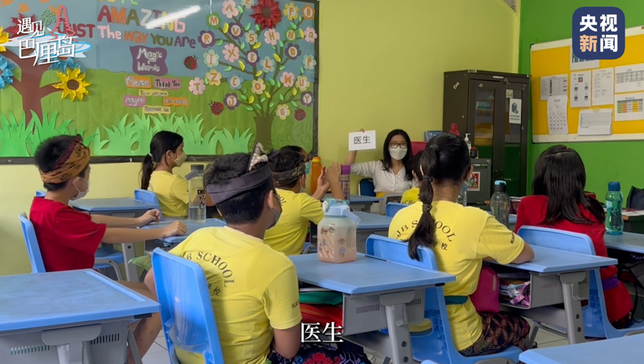 在这间巴厘岛的学校,从幼儿园开始,中文就是必修课。在小学生们的中文课堂,组词和读字游戏是他们常玩的游戏。